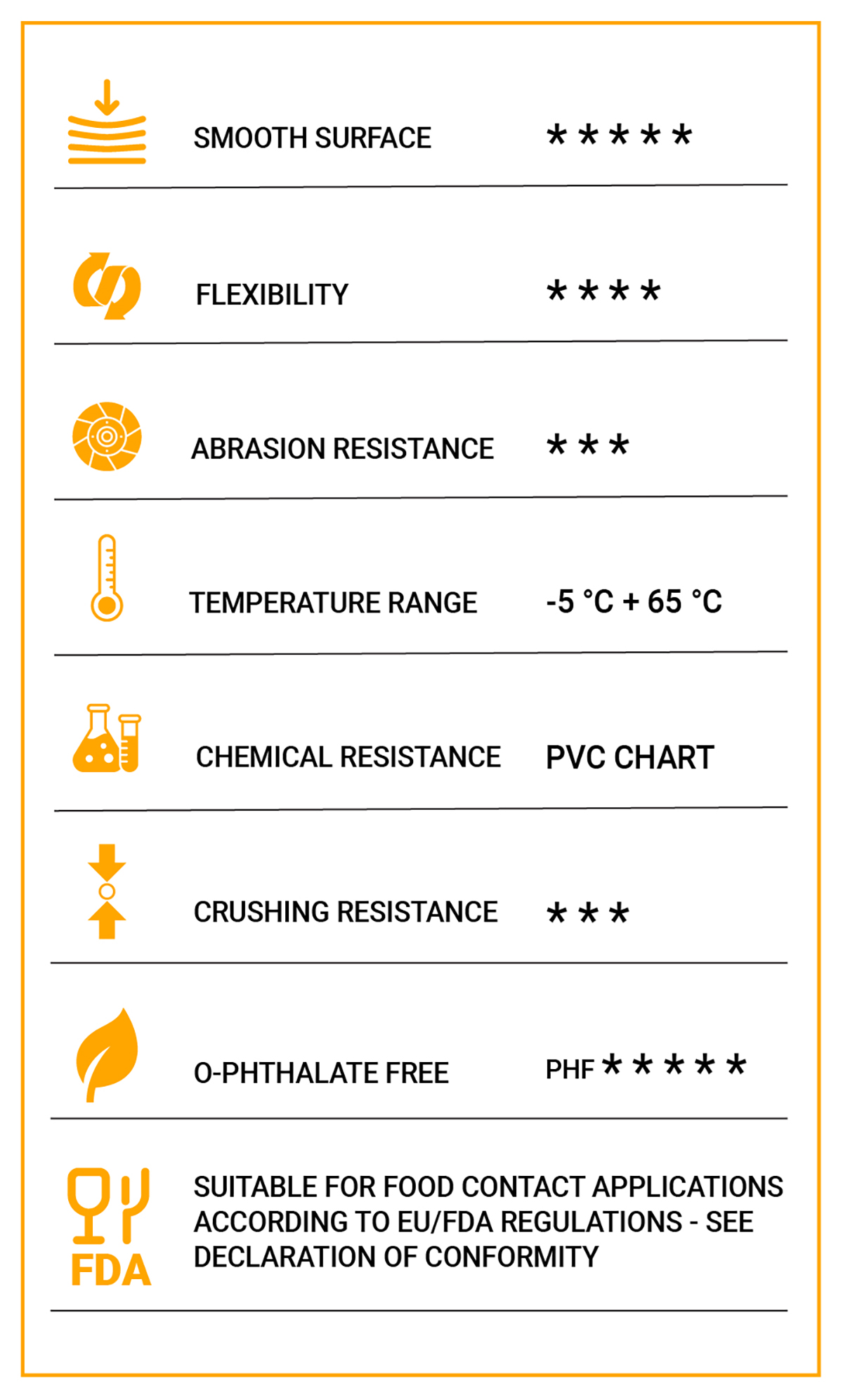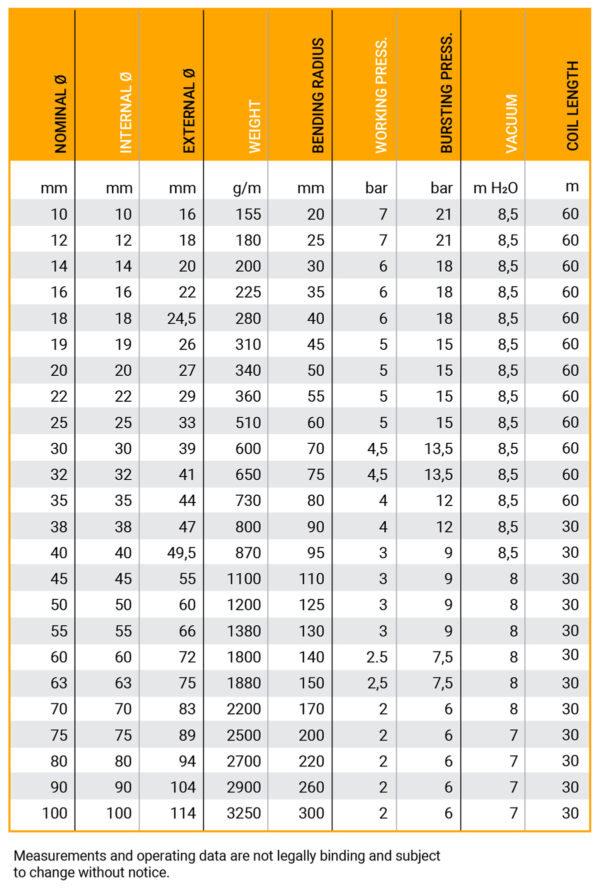 Πλαστικοποιημένος σωλήνας PVC με ενσωματωμένο σπιράλ από γαλβανισμένο χάλυβα, για αναρρόφηση και παροχή υγρών και υγρών τροφίμων.